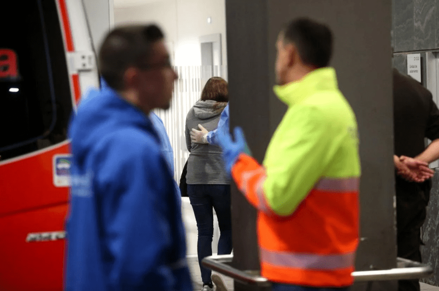 La joven llegó al HUCA muy nerviosa y llorando, a la vez que pedía perdón constantemente al personal sanitario que la acompañaba, ataviado ya con trajes de protección azules, gafas y mascarillas, y ante una mayor presencia de miembros de los equipos de seguridad que de costumbre. Su estado no revestía gravedad y el traslado se realizó en una ambulancia de soporte vital básico, descartándose una UVI móvil. De hecho descendió del vehículo por su propio pie.
