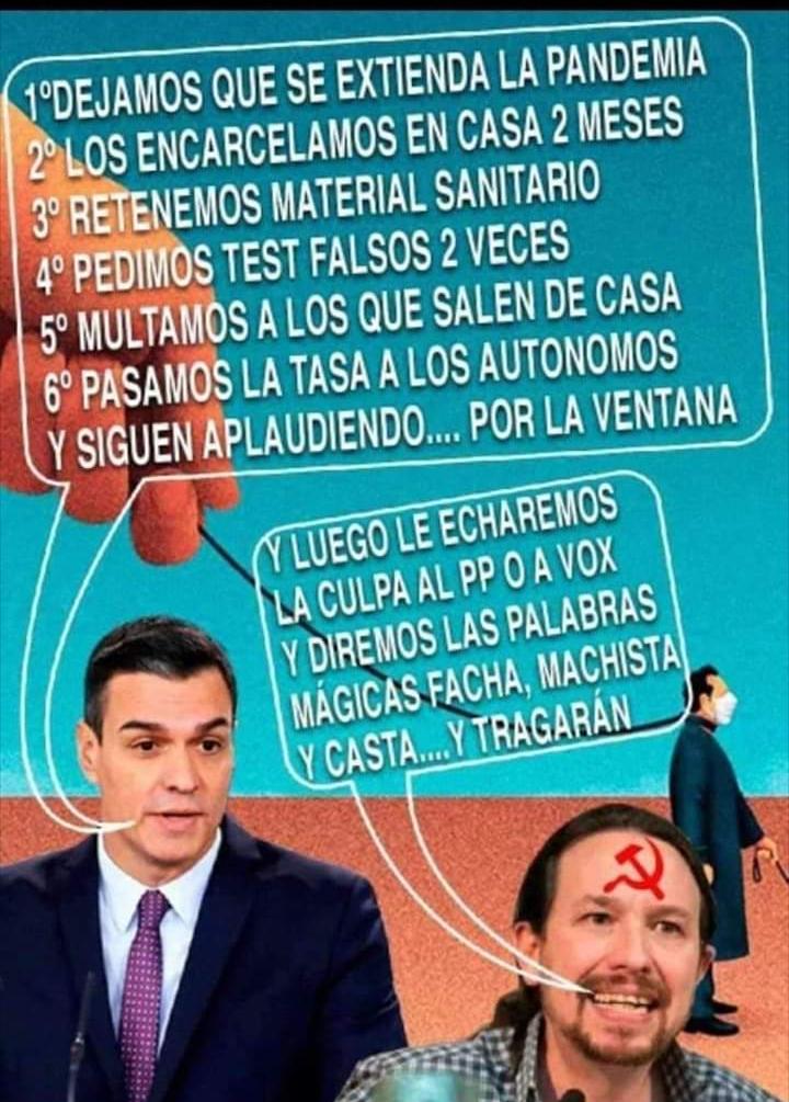 En las filas populares hay voces que dicen que han tomado nota de la «estrategia de Moncloa» para hacerles caer con «sus mentiras» en su «trampa», la de que que antes de tiempo «nos retratemos como un partido que se sitúa fuera del diálogo para hacer frente a la crisis, que no le faltara tiempo a la izquierda para agitar el discurso de que estamos pensando en nuestro interés en lugar de en el interés general». [Resumiendo: Mientras la banda de los Picapiedra sigue con su despreciable estrategia electoralista, los españoles seguimos muriendo a miles todos los días a causa de esta peste. ]