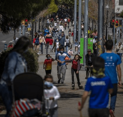 En la foto, aspecto que presentaba ayer un bulevar de Barcelona en la primera jornada que se permitió salir a los más pequeños de casa.