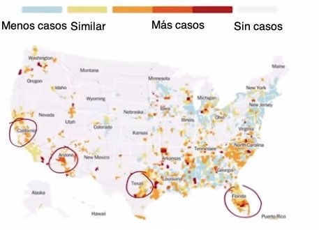 «En estados de EEUU donde hay calor y humedad, dos circunstancias que en principio ayudan a que el virus esté más controlado están teniendo rebrotes», comenta este experto. En particular, Florida, Texas, Arizona o California están están registrando importantes repuntes del número de casos.