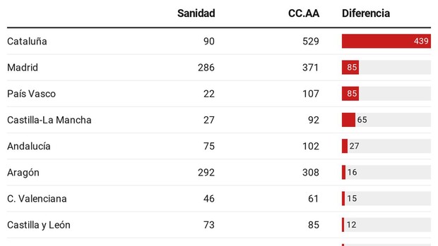 Al margen del sistema de recuento de la Generalitat catalana, en la Comunidad de Madrid y en el País Vasco, sus respectivas consejerías cuentan 85 muertos más que el Ministerio de Sanidad. El Gobierno de Madrid se suma 371 decesos frente a los 286 que le asigna Sanidad en la «nueva normalidad». El Gobierno vasco se cuenta 107 casos frente a los 22 que le computa el Ministerio.