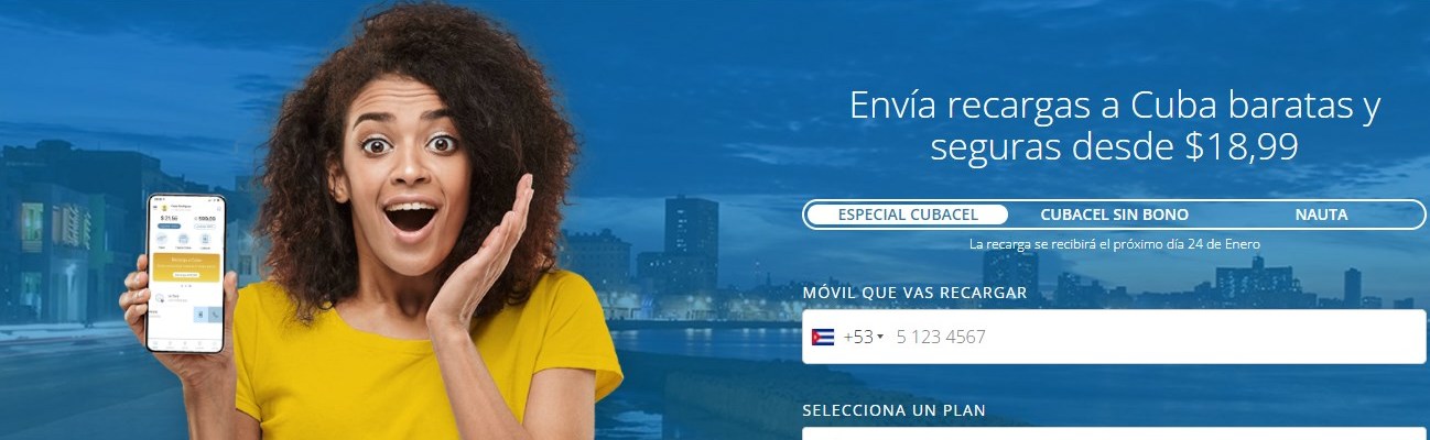 Entre esos servicios se halla la recarga Cubacel a un teléfono móvil en Cuba, con nuevos planes aún más ventajosos. Y la recarga Nauta para una cuenta de internet en Cuba.
