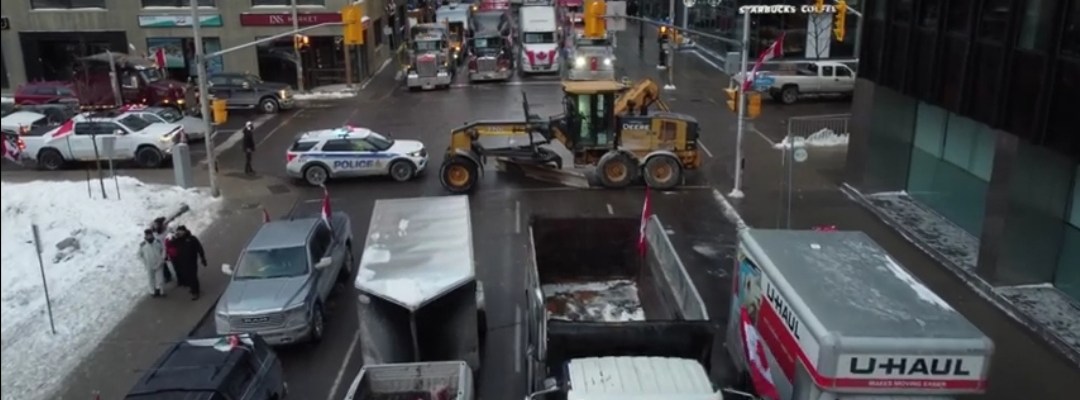 Ver «CONVOY de camiones el domingo por la mañana en Canadá, visto desde un dron. IMPRESIONANTE»