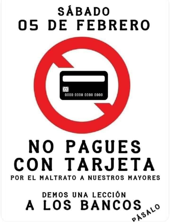 Sábado 5 de febrero de 2022: no paguéis con tarjeta hoy. Lucha por el trato humano a nuestros mayores en los bancos
