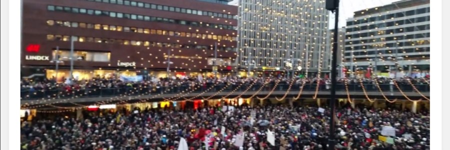 Gran protesta ocupa el centro de Estocolmo, Suecia, contra el pasaporte nazi del experimento génico