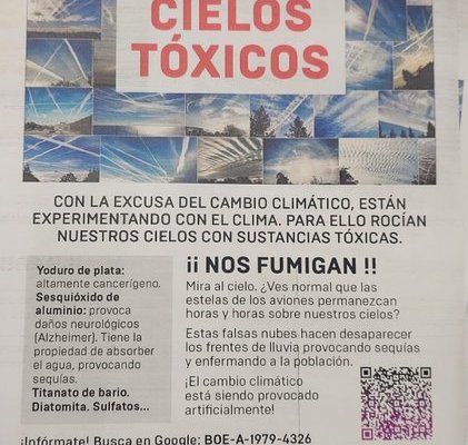 Ministras de @sanidadgob, @mitecogob y @Defensagob, ¿por qué se consiente esto en #Espana? Medios hermanos de @eltorotv como @7nn_Tv, @edatv, @informaradio_ , @Radiodecision, @ramblalibre_com deberían tratar el tema #Chemtrails en bucle. Nos están matando lentamente. #Nuremberg2 https://t.co/7YLQug7cDW