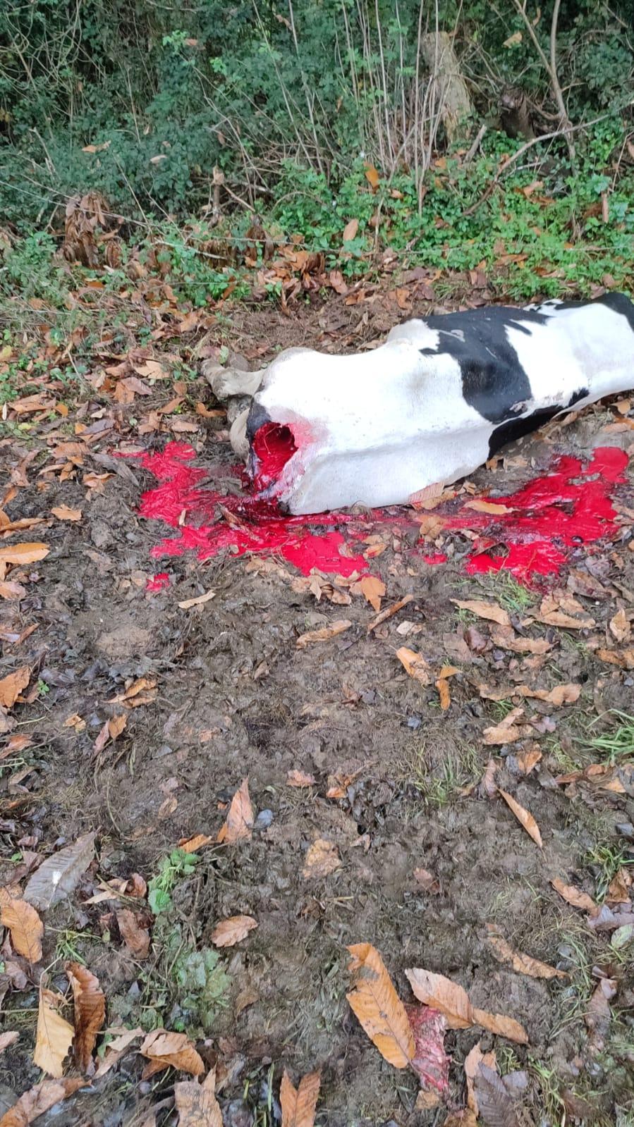 Les adjuntamos 2 fotos de ejemplo: una vaca comida viva en el municipio de Castropol, y que aún agonizaba cuando la encontraron; y un perro mastín del que solo dejaron la cabeza, por la zona de Coaña.