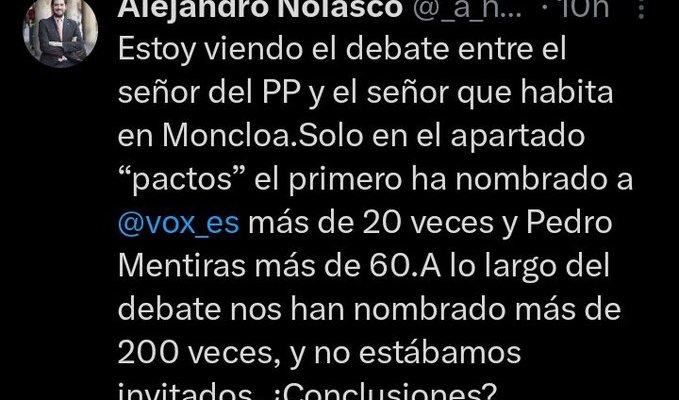 VOX se convierte en el protagonista del debate bipartidista, como formación más citada por los candidatos. pic.twitter.com/wURXfNBb27