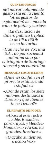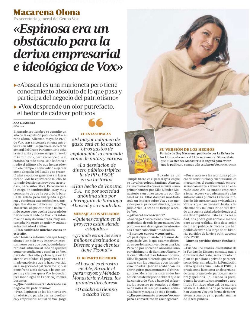 Macarena Olona hace saltar por los aires a VOX / La deriva del partido de derechas desde que los fundamentalistas tomaran el control y purgaran a dos de sus tres fundadores, con el fin de «convertirlo en una SA» en beneficio de la cúpula