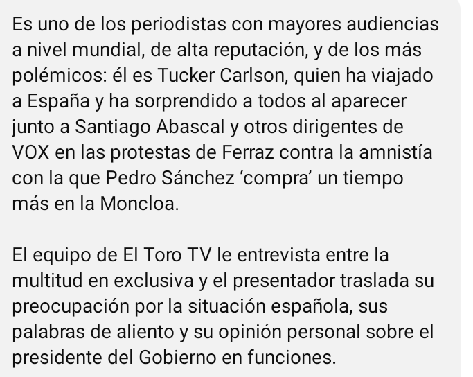 EL PERIODISTA MÁS FAMOSO DEL MUNDO, TUCKER CARLSON, VIENE A FERRAZ COMO MODERNO HEMINGWAY PARA CONTAR EL GOLPE DE ESTADO CONTRA ESPAÑA -El Toro TV entrevista en exclusiva a Tucker Carlson en Ferraz: “¡Sánchez es un dictador!»