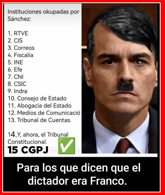 Dictadura = concentración de poderes en una sola persona. El sátrapa Sánchez…