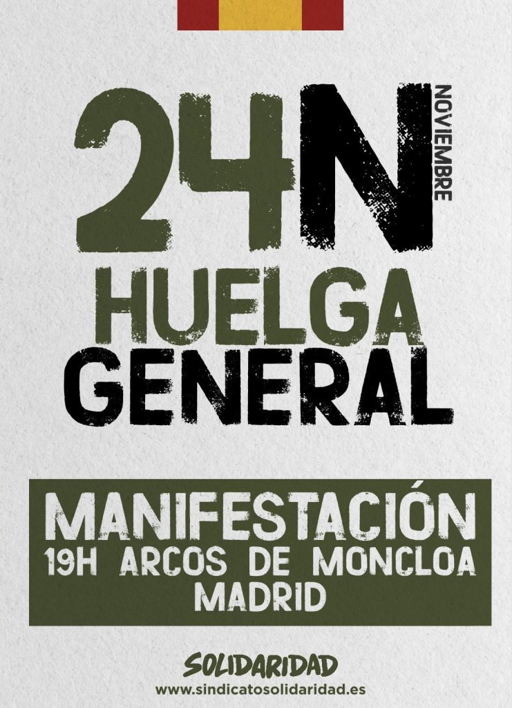 – El sindicato Solidaridad registró la solicitud de convocatoria de Huelga General ante el Ministerio de Trabajo y Economía Social, el pasado 13 de noviembre de 2023 y fue admitida con el número de registro REGAGE23e00076984078.